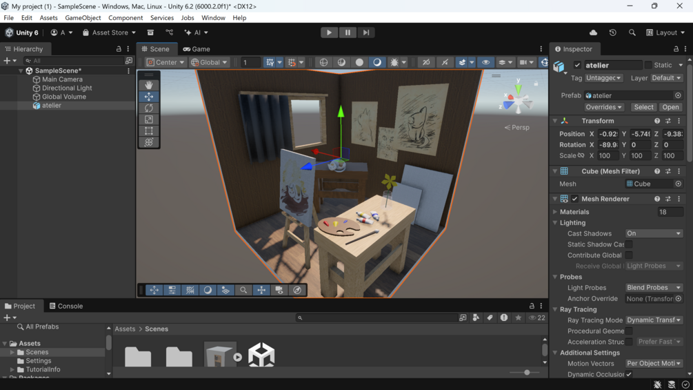 5. Complete atelier scene using 1–4 (all objects combined) — atelier.fbx