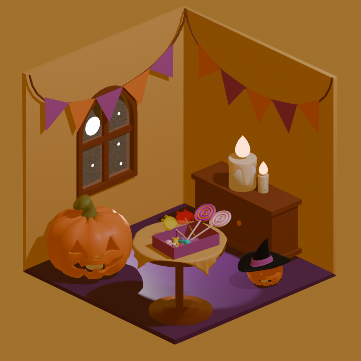 5. Halloween Room (combined model using items 1–4) — halloween.fbx